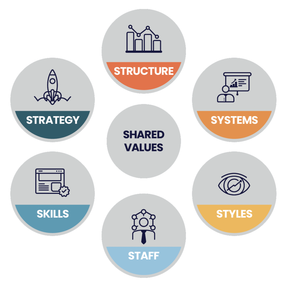 Our Strategic Direction, Planning and work systems are based on the McKinsey 7S Model of Organizational development.